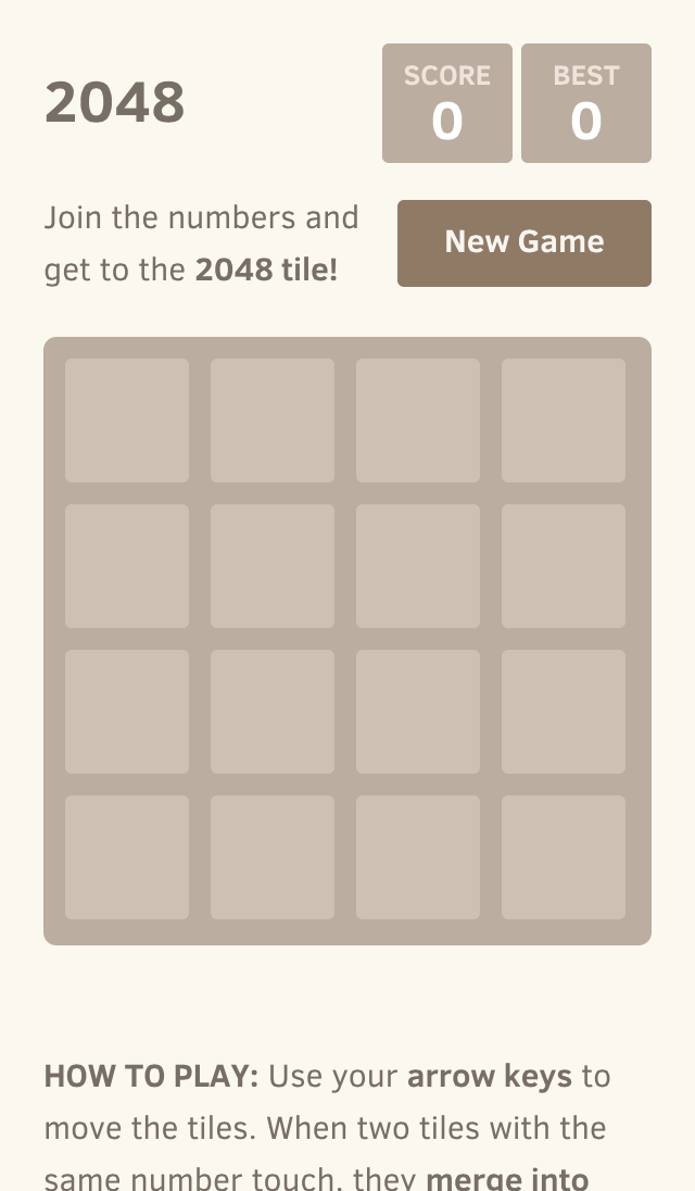 注意事項:此網站為 2048 官方遊戲網站,你可以使用電腦、手機或平板進入2048官方遊戲網站進行遊玩。其他 2048網站 或 2048 APP 並非被認可,請謹慎使用。